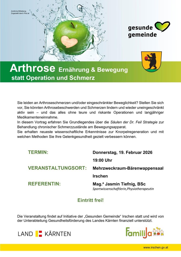 Vortrag Arthrose - Ernährung & Bewegung statt Operation und Schmerz